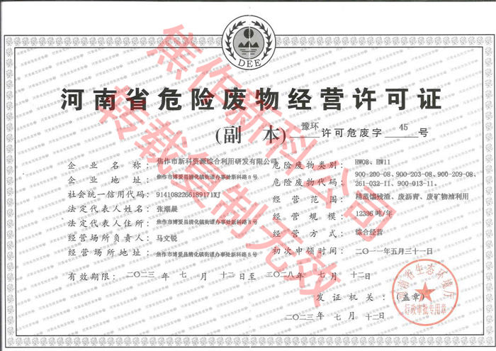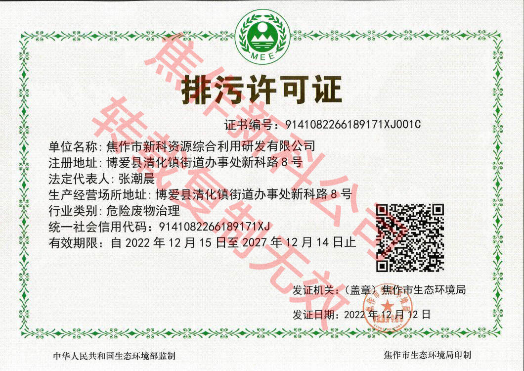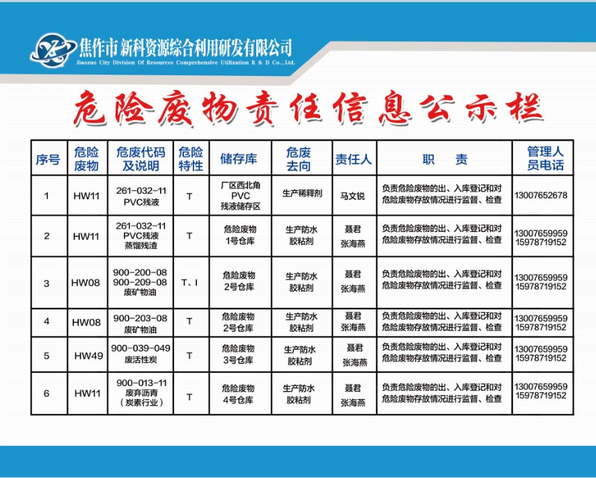 焦作市新科資源綜合利用研發(fā)有限公司位于博愛(ài)縣新科路8號(hào),占地40余畝,注冊(cè)資本3000萬(wàn)元,是一家科技環(huán)保型危險(xiǎn)廢物綜合利用企業(yè)。目前擁有“年12000噸PVC殘液綜合利用項(xiàng)目”和“利用多種有機(jī)蒸餾殘?jiān)a(chǎn)防水膠黏劑項(xiàng)目”。
